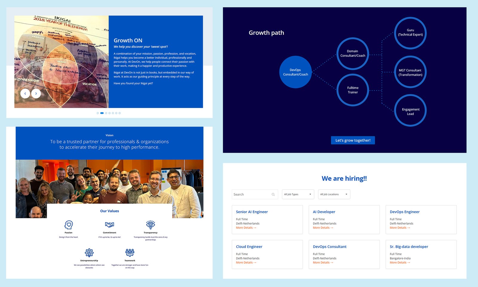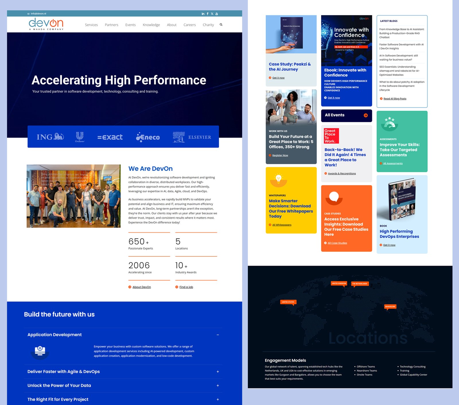 I worked with some of DevOn’s clients in the initial months and then moved into the marketing team. My primary responsibilities were maintaining their WordPress websites — devon.nl, the global site, and the Academy. I developed their brand-new career site, designed two books, and was part of all of their marketing campaigns.
